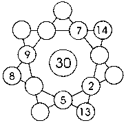 сумма каждых двух клеточек равнялась цифре, написанной в том треугольнике, который примыкает к этим двум клеточкам. Вы можете вписать только 1 цифру в каждую клеточку, причем каждую цифру можно использовать только 1 раз.185.