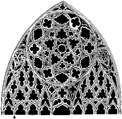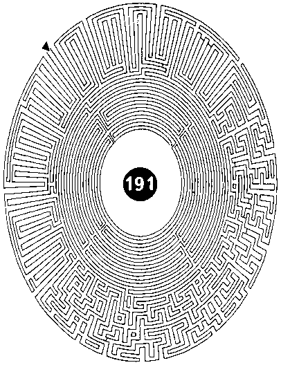 В узоре этого витража замаскирована дорожка от нижнего левого угла к центральному кругу. Попробуйте ее найти, идя по белым линиям резьбы.