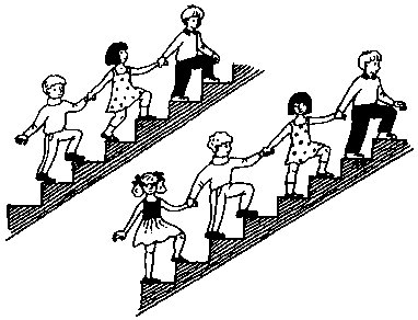 Мы видим на рисунке, как Ваня, Маша и Павлик поднимаются по лестнице. Они идут друг за другом в определенной последовательности. Сколько вариантов такой последовательности может быть? А если к ним присоединится Аня — тогда сколько вариантов?