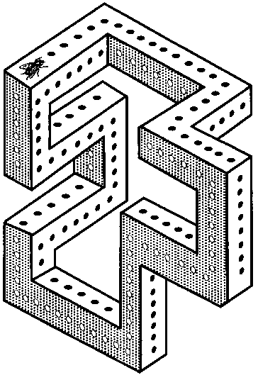 Посередине каждой из сторон этой странной фигуры проходит пунктирная линия (включая и те стороны, которые вам не видны). Если по этой пунктирной линии поползет муха, вернется ли она на то же место, откуда отправилась?