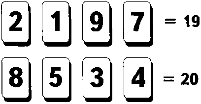 Перед вами карточки с цифрами. Делая как можно меньше ходов, поменяйте их так, чтобы сумма в обоих рядах была одинаковой.