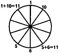 В одной компании в начале карточной игры возникла удивительная ситуация. Когда всем игрокам раздали по 1 карте, оказалось, что значения карт идут по порядку от 1 до 10, ни одно значение карты не повторяется, а сумма карт у любого из двух соседних игроков равна сумме карт двух игроков, сидящих друг напротив друга. Вы можете определить относительное расположение 10 карт? Например: 1 + 10 =11 и 5 + 6 =11.