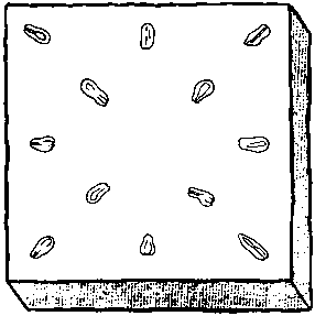 Представьте себе, что вам и троим вашим друзьям дали квадратную ириску с 12 орешками при условии, что вы поделите ее поровну. Вы все должны получить кусочек ириски одного размера и формы с 3 орешками сверху. Как вы поделите ириску?