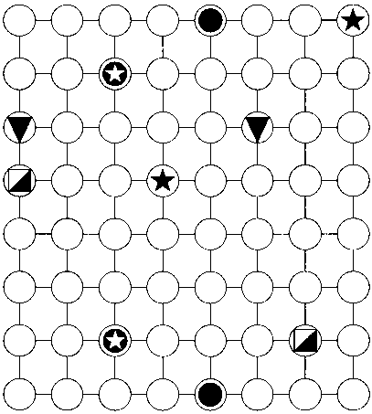 Робот получил задание соединить проводами на этой схеме каждые 2 кружочка с одинаковыми условными обозначениями. Линии нигде не должны пересекаться, а кружочки внутри схемы не должны быть использованы дважды. Вы можете найти решение?