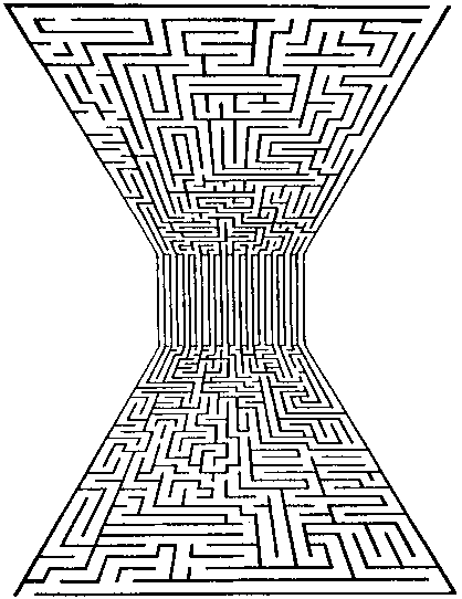 Перед вами опять лабиринт. Начинайте путь от правого верхнего угла. А выбраться из лабиринта вы должны в левом нижнем углу.