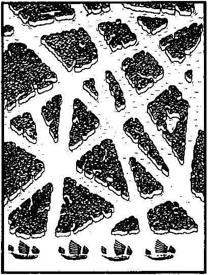 Император знал, что ему нужно всего 4 корабля, чтобы контролировать все проливы между островами. Пометьте 4 крестиками те места, где для этой цели надо поставить корабли.