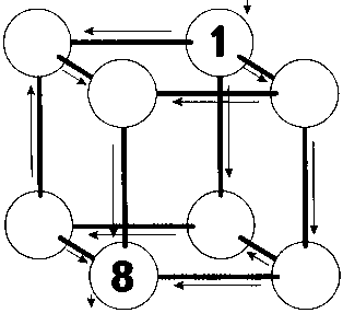 На магическом кубе волшебника Мерлина прежде были цифры в каждой его вершине, расставленные в определенном порядке (от 1 до 8). К сожалению, по рассеянности Мерлин стер все цифры, кроме 1 и 8, но оставил стрелки, указывающие возможные направления движения. Вы можете помочь ему восстановить номера в правильном порядке?