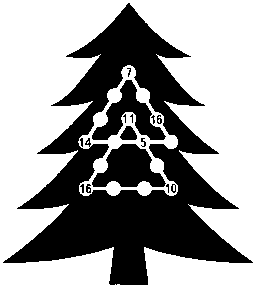 загорается раз в минуту, другая — 2 раза в минуту и так далее — до 16 раз в минуту. Общее количество вспышек за минуту на всех 6 линиях равняется 34. Расположите лампочки на елке в правильном порядке.290.