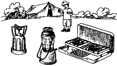 Очень безалаберный турист потерял зажигалку, и у него осталась всего одна спичка. Он хотел зажечь обе свои походные плитки (одну — с двумя горелками, другую — простую газовую), походную лампу и прикурить сигарету. Что нужно ему зажечь в первую очередь?