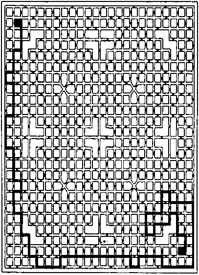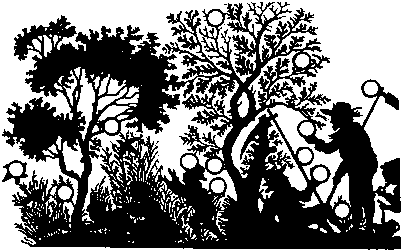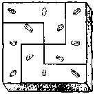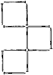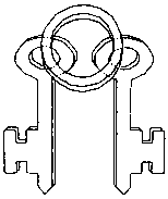 259. Вырежьте из картона связанные ключи и кольцо, как показано на рисунке. Потом осторожно надрежьте картон по линиям разрыва (пунктирным). Затем с помощью перочинного ножа разрежьте картон снизу по 4 квадратикам, образованным этими линиями. И вот ключи свободно висят на кольце.