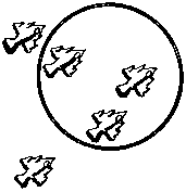 Выстрел из лазерного автомата лейтенанта Ветрова создает силовое поле круглой формы. Сделав еще два выстрела, создающих точно такие же силовые поля, он может отрезать все самолеты противника друг от друга. Попробуйте и вы сделать то же самое, добавив еще два круга, в точности соответствующих изображенному на рисунке.
