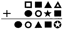 Экран нового компьютера дал сбой и вместо обычного примера на сложение выдал геометрические фигуры. Вы можете заменить эти фигуры на цифры, чтобы пример был верным?
