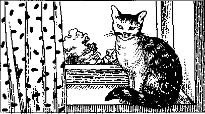 Что находится ближе всего к кошке, которая сидит на подоконнике?