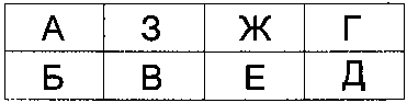 Возьмите прямоугольный лист бумаги и разделите его на 8 квадратов, помеченных буквами, как показано на рисунке. Сложите этот лист таким образом, чтобы в сложенном виде на нем был один квадрат с буквой А, а все остальные буквы шли за этим квадратом в алфавитном порядке.