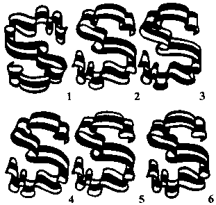 На рисунке изображено шесть лент в форме латинской буквы 8. Какая буква 8 подходит к ленте №6?
