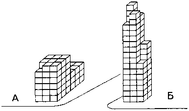 На этих архитектурных макетах каждый куб является отдельной квартирой. Контракт на строительство достанется тому архитектору, на макете которого больше квартир. Какой из макетов отвечает этому требованию?