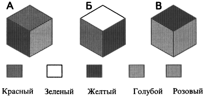 Рекламное агентство направило эти рисунки заказчику — производителю упаковки. Ему предложили решить, какой цвет должен быть на той стороне упаковки, которая находится напротив желтой стороны на рис. В. На следующий день заказчик позвонил. Какой вопрос он задал?