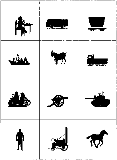 На рисунке изображены 7 фигур одного и того же бегущего солдата. Какая из фигур настоящая, а какие — только ее зеркальные отражения?