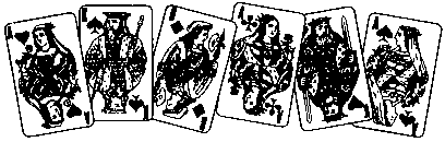Расположите эти карты — даму червей, короля пик, бубнового валета, даму треф, короля червей и даму пик так, чтобы были соблюдены