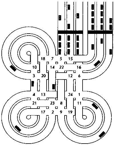 на этой автомобильной развязке платят деньги, пересекая каждую эстакаду. Плата на каждой развязке в форме завитка в сумме составляет 100 долларов. Некоторые эстакады изображены на рисунке. Дорисуйте остальные.163.