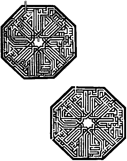 На каждом из этих двух арабских узоров изображен лабиринт. На первом лабиринте показан путь к центру.