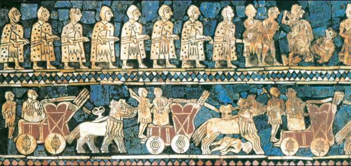 Штандарт из Ура. Инкрустация перламутром, ляпис-лазурью и красным известняком. Ок. 2600 г. до н. э. Британский музей. Лондон