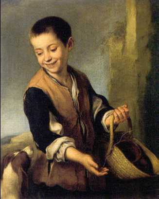 Особой теплотой и проникновенностью отличаются изображения детей-бедняков («Едоки дыни и винограда», ок. 1650; «Мальчик с собакой», 1655-60; «Продавщица фруктов», 1670-75), Младенца Христа («Св. семейство с птичкой», ок. 1650 г.). Кроткой доверчивостью проникнуты юные Мадонны Мурильо («Вознесение Марии», 1670-е гг., и др.).