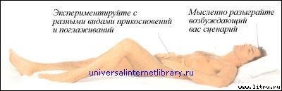Смажьте руки теплым массажным маслом, чтобы они легче скользили, а прикосновения были более чувственными. Улегшись на спину, начинайте массировать руки, плечи и бедра, эрогенные зоны, например соски. Затем переходите к стимуляции половых органов. Во время следующих сеансов делайте все, что вам нравится: читайте, смотрите телевизор и т.д.