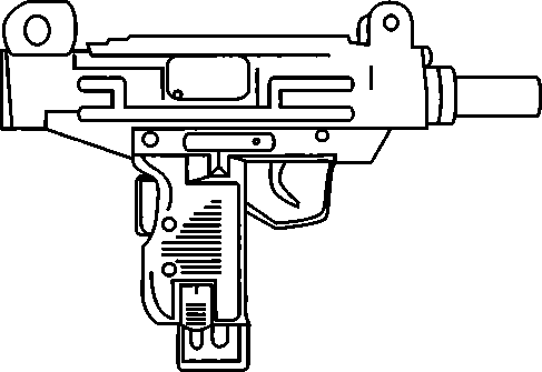 Ручной предохранитель расположен слева на пистолетной рукоятке, дополнительно имеется автоматический предохранитель на тыльной стороне рукоятки. Питание патронами — из двухрядных коробчатых магазинов от пистолетов-пулеметов Uzi (вариант 9x19 мм Parabellum) или из специальных магазинов (вариант.45 АСР). Прицельные приспособления открытые, регулируемые.