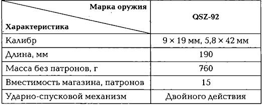 Пистолет QSZ-92 был разработан в середине 1990-х гг. для вооружения Народно-освободительной армии Китая. В настоящее время он предположительно в небольших количествах имеется на вооружении некоторых частей НОАК. Пистолет разработан в двух калибрах — под усиленный патрон 9x19 мм (по размерам идентичный патрону 9x19 мм Parabellum), а также патрон калибра 5,8 х 42 мм китайской разработки с бутылочной гильзой и остроконечной пулей (концептуально подобный бельгийскому 5,7 х 28 мм патрону для пистолета Five-seveN и пистолета-пулемета FN Р90).