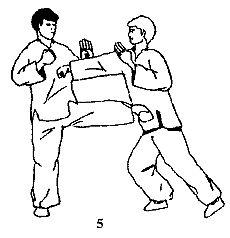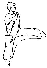 Очень сильный и мощный удар. Как правило, его используют для поражения ног противника, а иногда и солнечного сплетения (рис. 4).