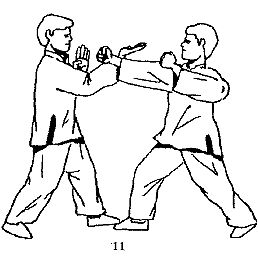 Партнер атакует Вас прямым ударом рукой в лицо. Вы блокируете его удар движением ТАН САУ (рис. 11).
