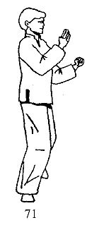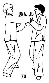 Вы блокируете удар одновременно двумя руками. Правая выполняет блок Джан Сау, левая — У Сау (рис. 70).