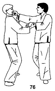 Затем партнер атакует апперкотом. Вы блокируете двумя руками одновременно, выполняя движение Гум Сау (рис. 75).