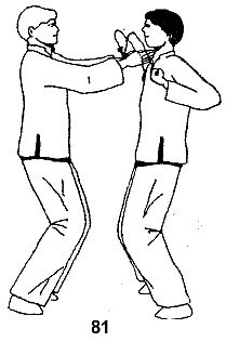 Партнер атакует одновременно двумя руками, направляя удар пальцами в горло (рис. 81).