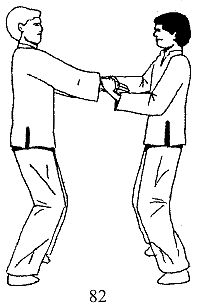 Вы накрываете руки партнера сверху и прижимаете их вниз (рис. 82).