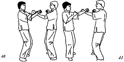 3. Одновременное нанесение ударов обеими руками (рис. 46, 47, 48).