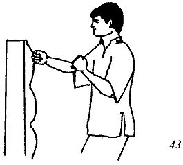 Затем нанесите удар правой рукой, левая рука отводится к груди (рис. 43).