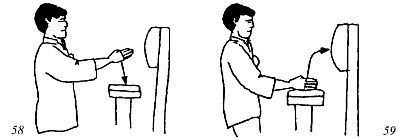 фалангами пальцев (рис. 55),передней частью кулака (рис. 56)