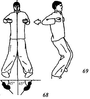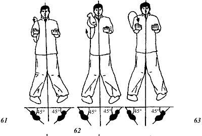 Примите фронтальную стойку. Кисти рук сжаты в кулаки и расположены по бокам у груди (рис. 61).