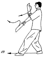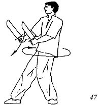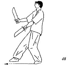 Поверните корпус вправо, выполняя левым клинком нижний блок Бон Дао (рис. 48).