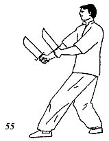 Используя приставной шаг, переместитесь вперед. Правым клинком нанесите рубящий удар Чап Дао (рис. 54).