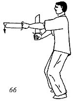 Оставаясь в фронтальной стойке, нанесите левым клинком протыкающий удар Бил Дао в средний уровень. Правый клинок находится в позиции У Дао (рис. 66).