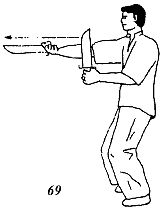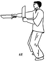 Нанесите правым клинком протыкающий удар Бил Дао в средний уровень. Левый клинок отводится в позицию У Дао (рис. 68).