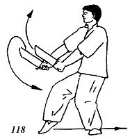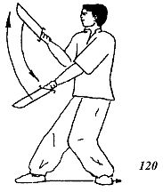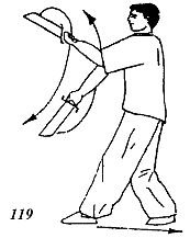 Сделайте шаг правой ногой назад, принимая левостороннюю стойку. Выполните двойной блок Джан-Ган Дао (рис. 119).