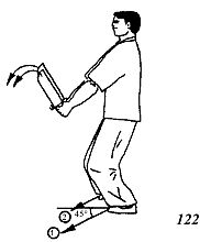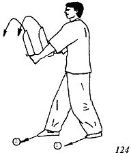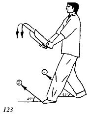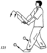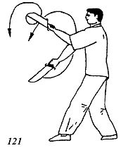 Подтяните левую ногу к правой. Примите фронтальную стойку. Клинки удерживаются перед собой в выпрямленных руках (рис. 122).