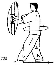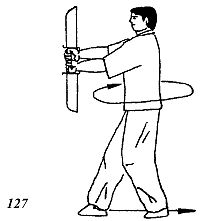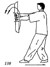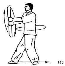 Сделайте правой ногой шаг назад. Принимая левостороннюю стойку, поверните корпус вправо (рис. 128).