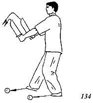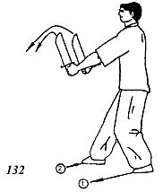 С шагом назад левой ногой примите фронтальную стойку. Клинки удерживаются перед собой в выпрямленных руках (рис. 131).