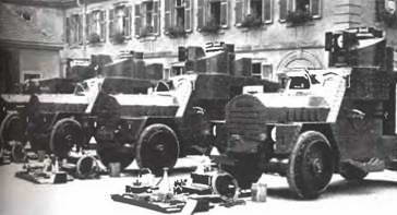 в «Бенц-Гаггенау» (Benz-Gaggenau). Накануне Первой мировой войны для германской армии фирма предлагала несколько моделей грузоподъемностью 15 т -от легких фургонов BL10 (20/25PS) до грузовиков ML13 (45/50PS) , оборудованных 4-цилиндровыми моторами мощностью 2 550 л .с, карданным или цепным приводом задних колес В 1912 г. базовые модели BL10, KL11 и ML13 были представлены на Всероссийском пробеге военных грузовиков. Одновременно в России появился и один из первых иностранных броневиков, так называемый блиндированный автобус Его построили в Германии на грузовом шасси «Бенц 35 40PS», оборудовав корпусом на 6 членов экипажа, в распоряжении которых находились три пулемета «Максим» (Maxim) калибра 7,62 мм.Крупные военные заказы, поступившие на фирму с началом войны, позволили в 1916 г. занять под выпуск армейских грузовиков производственные площади головного завода в Мангейме, где собирали 3-тонный автомобиль «3KL» с 45-сильным мотором. В 1918 г. его сменил 50-сильный вариант ЕТЗ с карданным приводом задних колес. Главной продукцией предприятия в Гаггенау долгое время оставался 5-тонный грузовик «5К» с двигателем мощностью 58 л.с. Кроме него там было собрано 105 тяжелых артиллерийских тягачей 80PS, а также организован выпуск 45-сильных машин КР (45PS), так называемых моторных передков, – короткобазных тягачей с местами для экипажа буксируемого орудия и гусеницами, навешивавшимися на задние колеса.