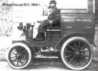 Небольшая фирма Жоржа Ришара начинала свою деятельность в 1897 г. с изготовления простых легковых автомобилей по лицензии немецкой компании «Бенц» (Benz). В 1900 г. она переключилась на выпуск машин с 2-цилиндро- вым мотором мощностью 6 л.с, установленным под сиденьем водителя, и цепным приводом задних колес, идентичных продукции бельгийской фирмы «Вивинус» (Vivinus). Во французской армии такие шасси с кузовами-фургонами применяли для перевозки почты и мелких грузов.